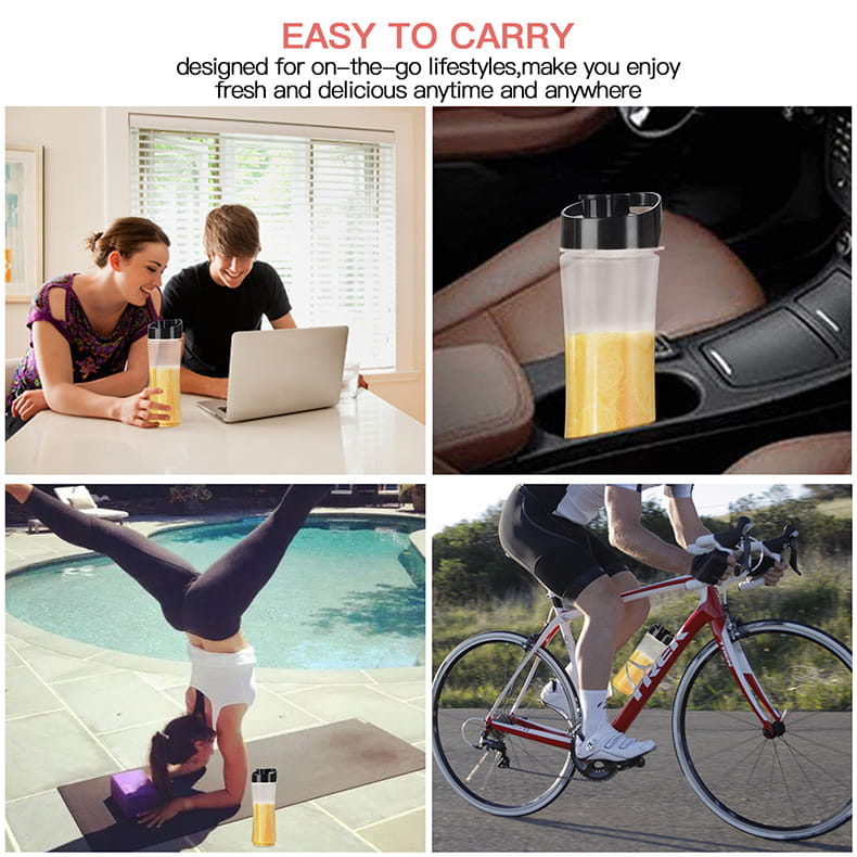 便携式果汁搅拌机由优质食品级材料制成,对您和环境无毒。 ABS材质,环保PP材质,不含BPA,让您在口渴时喝上健康安全的饮品!从奶昔、冰沙、果汁、婴儿食品等等,便携式果汁搅拌机都能做到!
